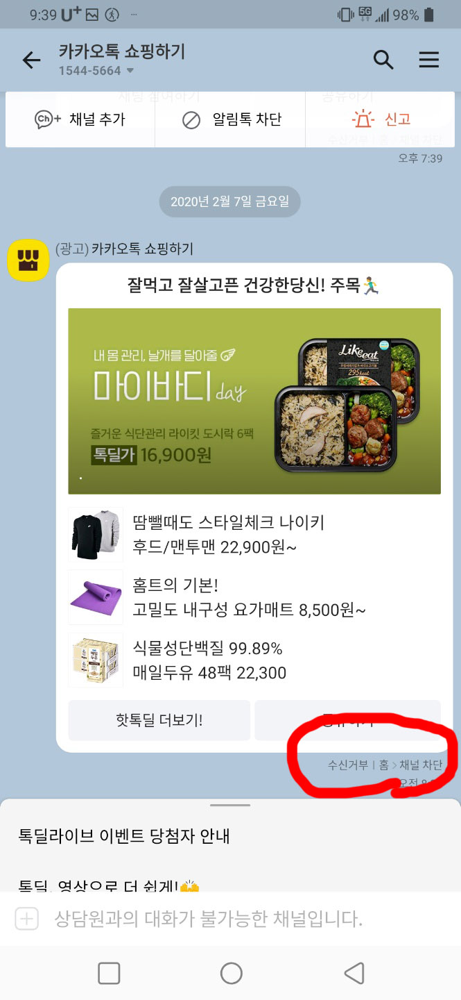 광고 메세지 밑에 "수신거부:홈>채널차단" ??????