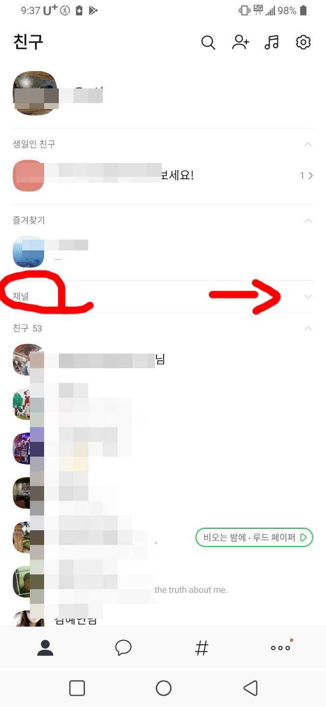 채널 목록이 닫혀 있으니깐 이거 찾는다고 눈 빠지는 줄 ~