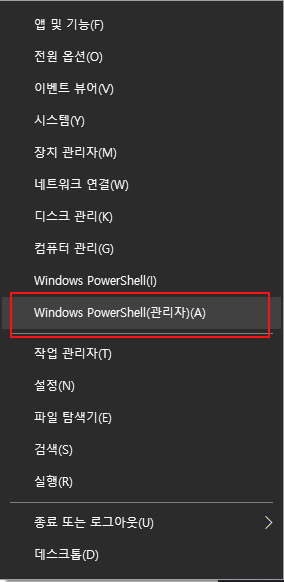 윈도우 시작 버튼에 마우스 커서를 가져가서