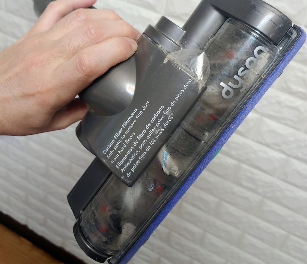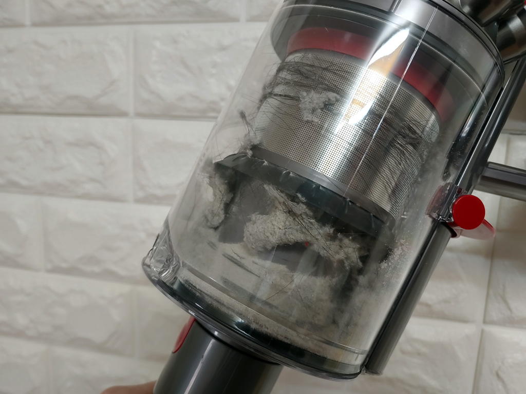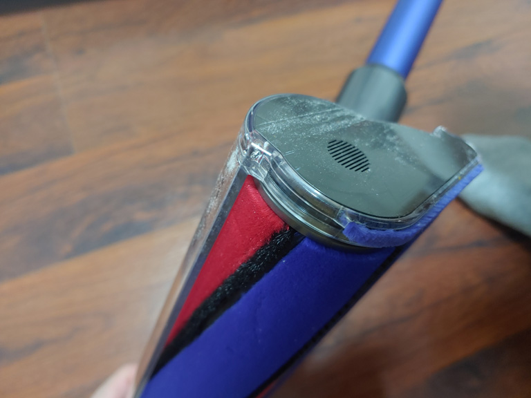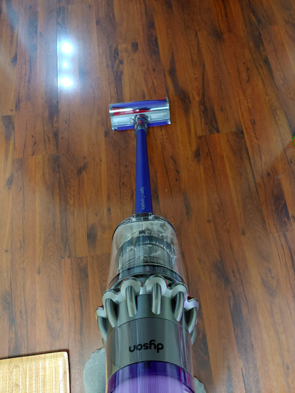 또 헤드와 본체와의 거리가 너무 멀어요. 이게 생각보다 귀찮아요, 청소기를 돌리다 보면 바닥에 물건이나 충전기 선 종이 등이 떨어졌을 때 청소기를 잡고 숙여서 치우기가 힘들어요, 살짝 들어서 청소기를 돌릴 경우도 있는데 이렇게 할 수가 없어요. 옆에 내려놓고 치우고 다시 들어서 청소하고.. 이런 게 은근히 귀찮아요.
