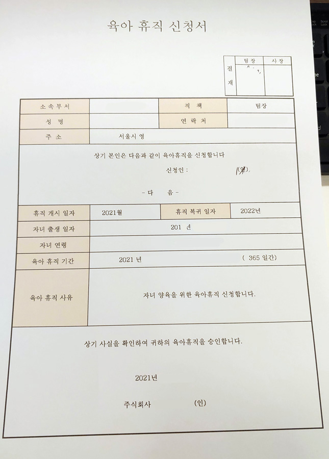조금 껄끄러운 것은 육아휴직을 하기 위해 사장에게 결제받는 일이 제일 힘들일이나 배려심이 많으신 사장님께서는 결제를 해주실지 모르겠으나 이해심이 없으신 사장님께서는 "You're fired." 이런 분 또는 온갖 핑계와 이상한 말로 멘붕을 일으키는 사업주에게는 정말 내가 육아휴직 후 퇴직할 각오로 "법대로 육아 휴직을 쓰겠습니다." 당당히 말을 하세요.