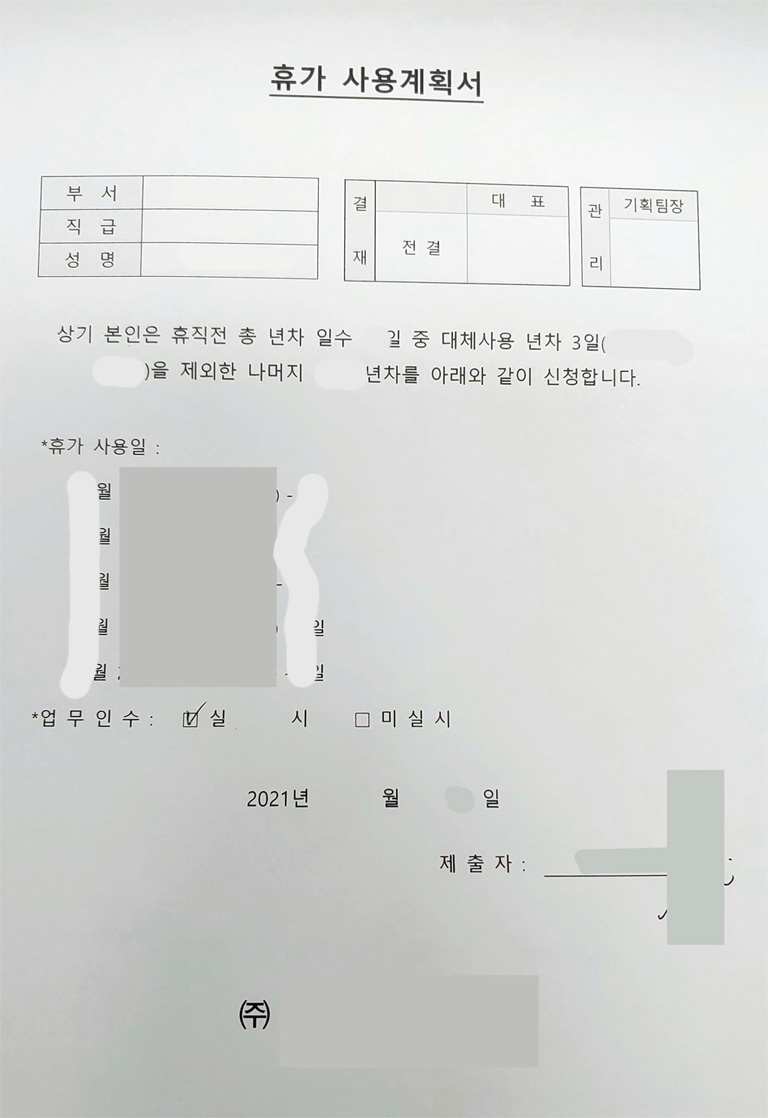 제가 육휴 신청 시기는 1월 중순, 신정 빼고 법정공휴일에 쉰 적이 없으니 연차는 아직 18개 남았으니 이것도 다 쓰겠다고 결제 올려버렸어요. ㅎㅎ 2월 한 달은 구정도 끼어 있고 해서 1달 휴가 갔다가 육아휴직 들어갔답니다.