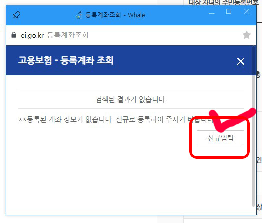 대상 자녀의 주민등록번호는 확인서 신청일을 검색 버튼이 클릭하면 새로운 창이 나옵니다.
