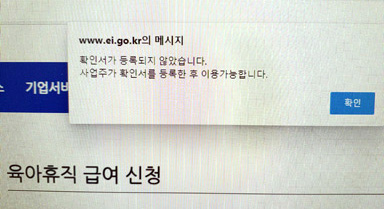 사업주가 확인서를 등록한 후 이용 가능합니다
