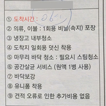 작업 시작 시간 : 아침 6시, 당일 이사