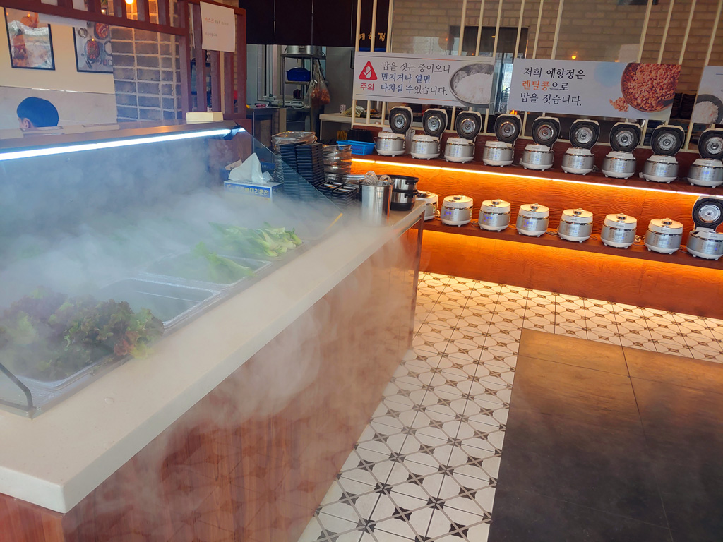 쌈 채소 셀프바에도 안개처럼 뿜어져 나와