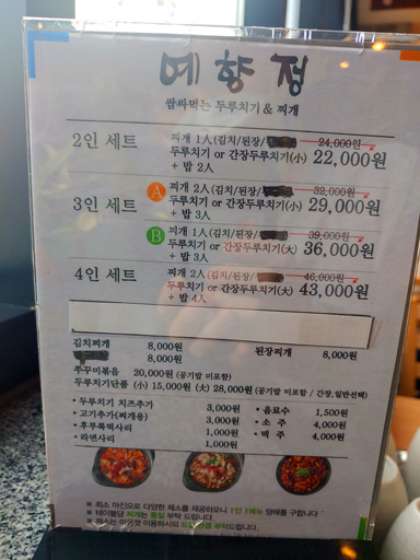 두 명이서 김치찌개 하나, 된장찌개 하나 주문하니