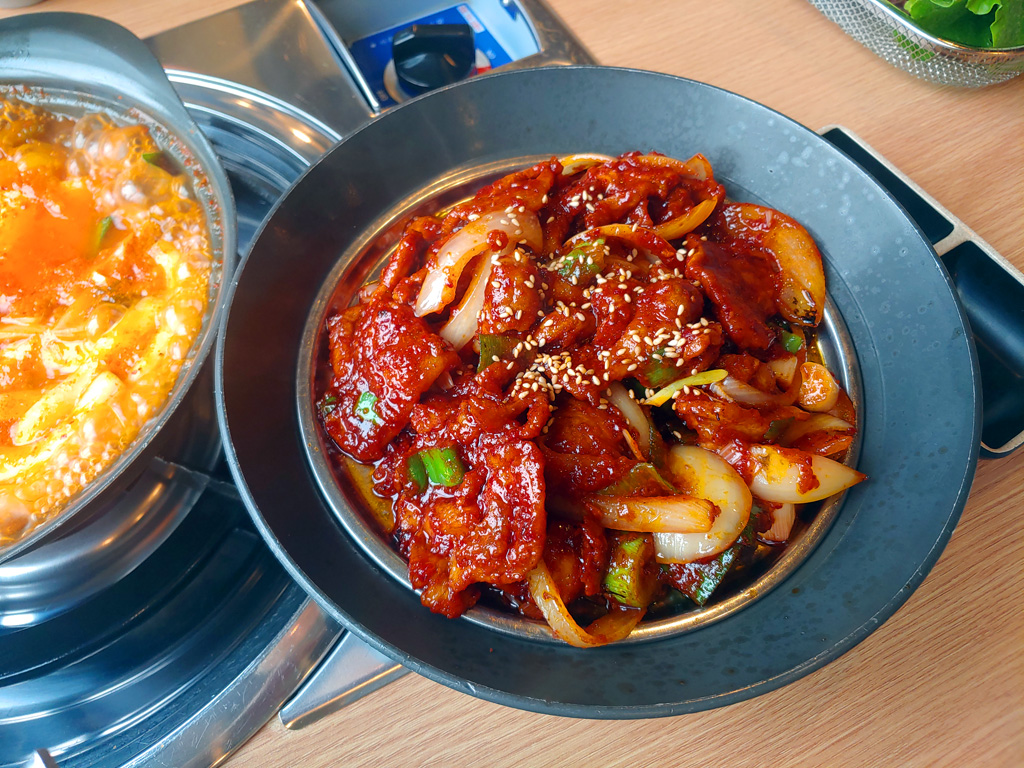 찌개부터 끓이고 먹고 있으니 두루치기가 나오네요.