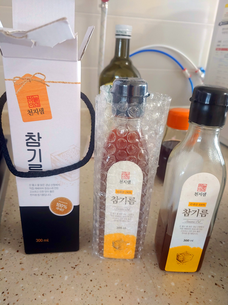 코로나가 너무 길어져 시골에 갔다 오기도 힘들고 ~ 시판용 참기름도 떨어져서 어디서 참기름을 구하나 ~ 하고 있는데 와이프가 천지샘 참기름을 주문했네요 ㅎ