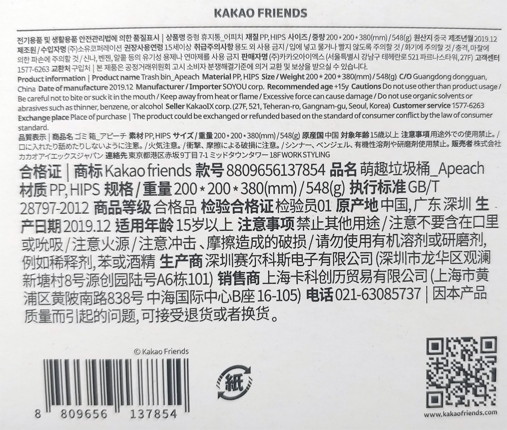 카카오프렌즈 쓰레기통 - 라이언, 어피치