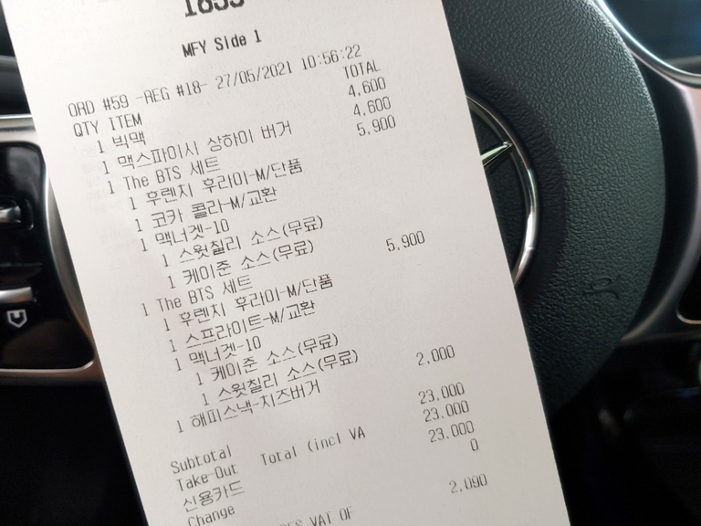 차를 끌고 드라이브스루 해서 받아온 BTS 세트