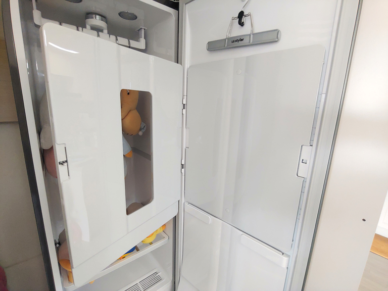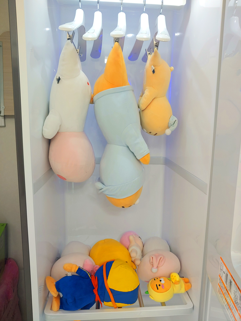 스타일러 중 옷걸이 3개짜리 사려고 하다고(싸니깐) 하다가 옷걸이 5개짜리 구입했는데 정말 잘 구입한 것 같아요. 3개짜리 샀으면 작아서 이불이랑 인형이 안 들어 갔을 것 같아요.