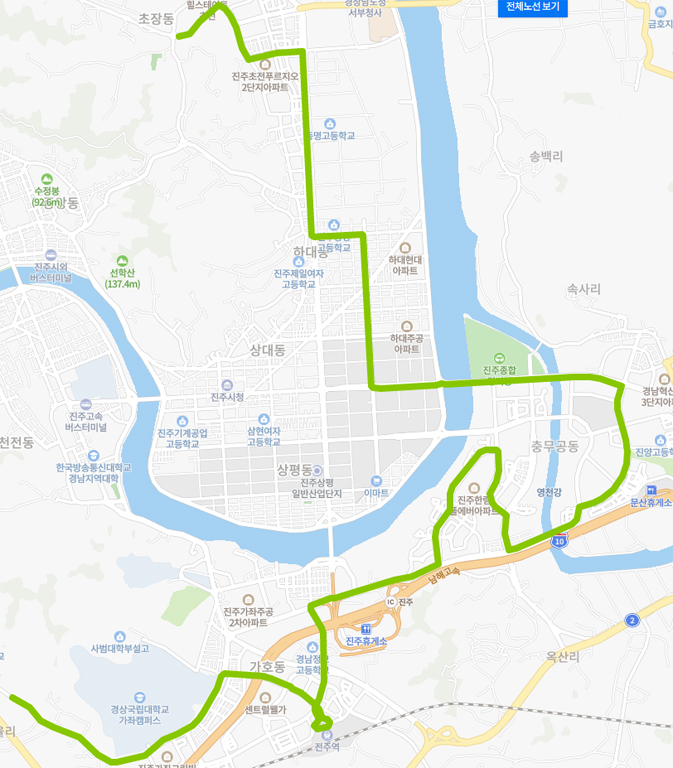 한국남동발전 LH1단지 기준으로 진주혁신도시를 지나는 진주 시내버스 노선을 알아봅니다.